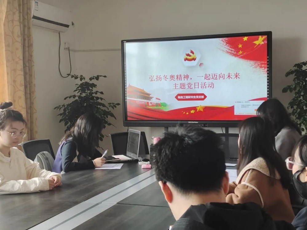 物流工程研究生党支部于2022年4月14日在信息楼524开展了以“弘扬冬奥精神,一起迈向未来”为主题的党日活动,本次活动由党支部书记苏辉主持,面向支部全体党员,开展主题交流会,深刻领会冬奥精神。