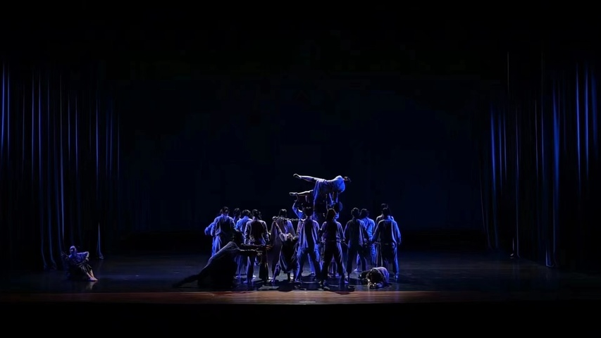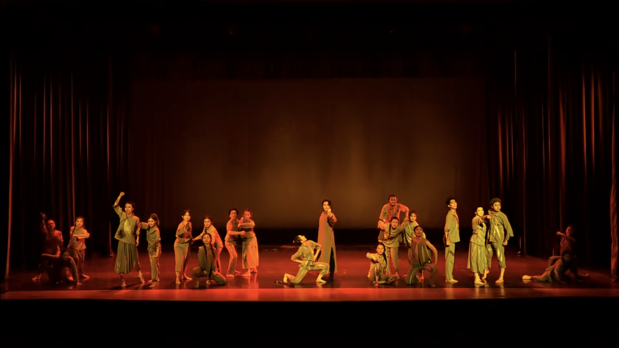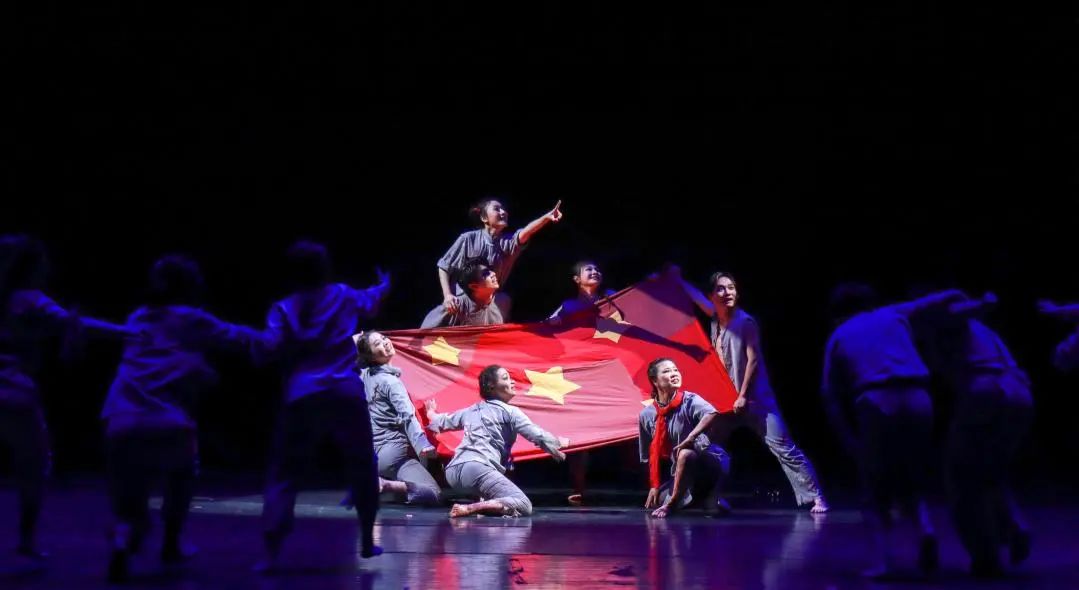 带着枷锁的舞者、穿越时空的呐喊,仿佛走进那段难以忘怀的红色岁月。面对压迫,共产党人率先觉醒,狠狠地将那束缚在中国人手中的镣铐砸向大地,开始为追求解放而斗争……,狱中的革命志士终于盼到胜利的消息,用身上仅存的几寸鲜血染红的碎布,编织成一面熠熠生辉的红旗。虽然无法摆脱牢狱,但能坦然赴死,革命先烈用自己的身躯坚定地守护着旗帜,守护着心中永生的信仰。