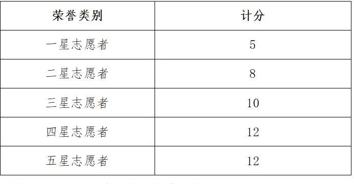 ②上一年度申请过星级志愿者的同学若本年度累计志愿时数未达更高一级星级志愿者评定标准不予重复评定。
