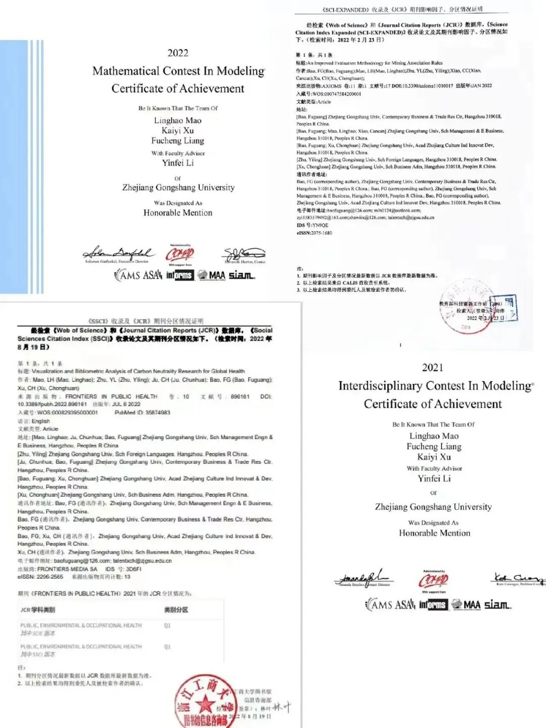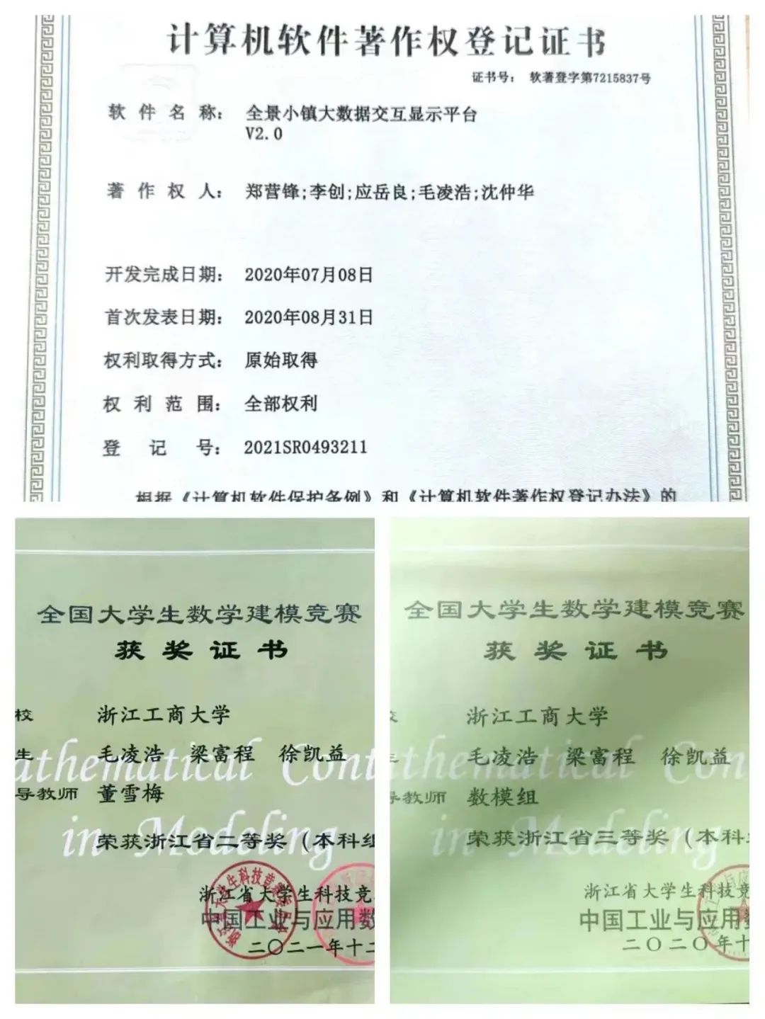 部分获奖证书