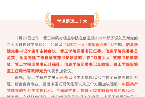 管工新媒体中心牢牢把握正确的政治方向,设立党建宣传专栏,推出“喜迎二十大”、“红色领航”、“学深悟透二十大”系列推文。紧跟pg电子模拟器 动态,聚焦活动现场,推出具有pg电子模拟器 特色的“遇见ME迎新系列”、“专业介绍”、“访企拓岗企业走访”等专栏,积极报送pg电子模拟器 师生活动,传播学科前沿信息。浙商大pg电子模拟器 公众号进入商大风云榜pg电子模拟器 官微前十名共16次,浙商大pg电子模拟器 公众号阅读量上千推文达20余篇,pg电子模拟器 知名度逐渐提高。