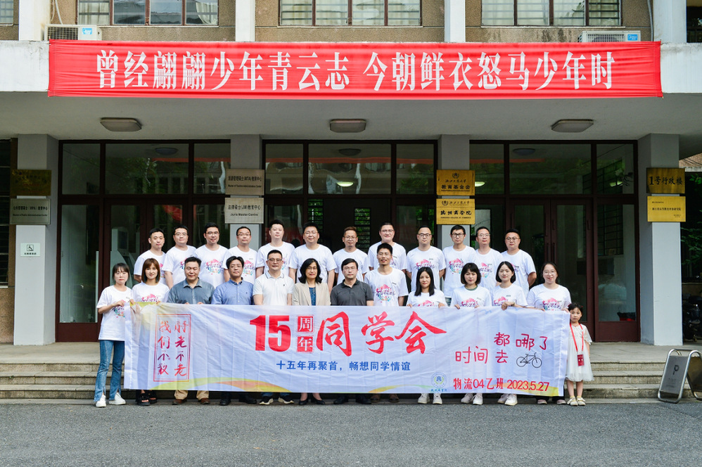 物流04乙班于2023年5月27日在浙江工商大学教工路校区成功举办了以“怀念不如相见”为主题的毕业第十五周年同学会。