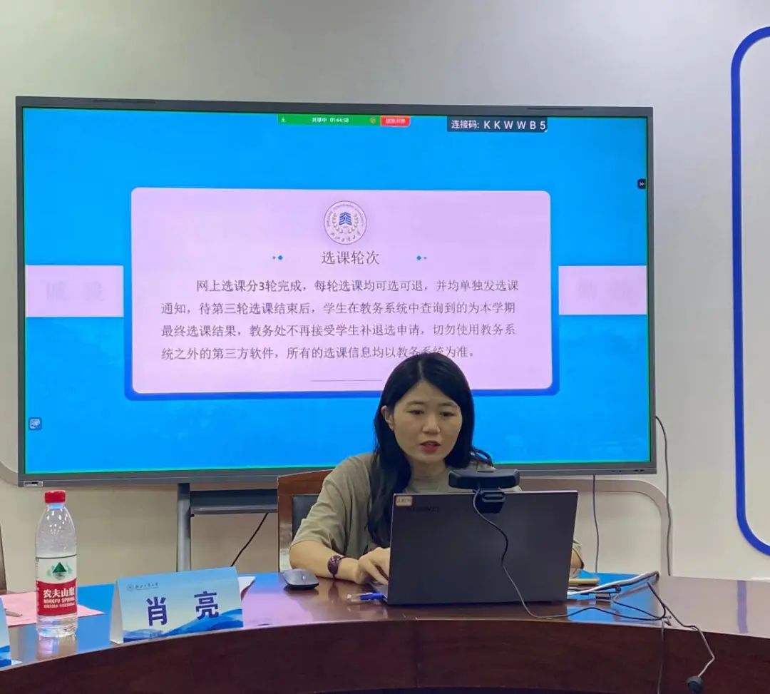 教务办老师张笑云从选课的轮次与安排、选课的系统与课程、注意事项等多个方面对学生的选课情况进行了详细的讲解。