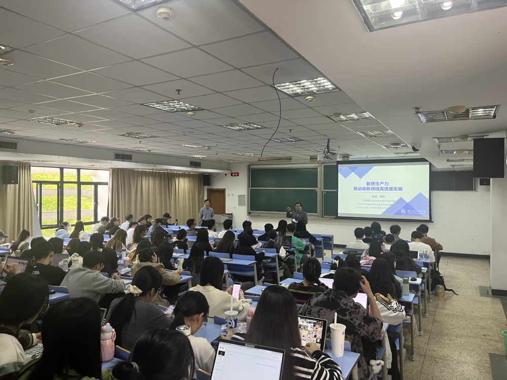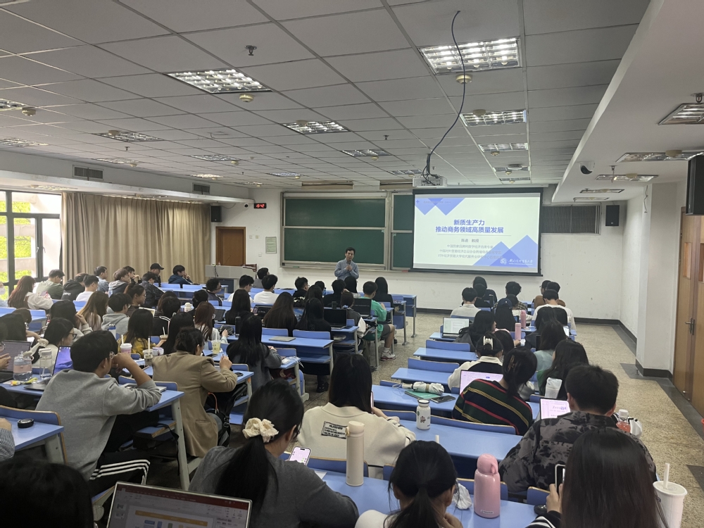 陈教授带领同学们走入最前沿的“新质生产力”,通过深入浅出的语言解释清楚了什么是新质生产力、如何发展商务领域的新质生产力,并着重论述如何以新质生产力推动商务领域高质量发展。同时,在讲座中引入了商务领域新质生产力发展的优秀案例,使同学们在生动的案例中加深理解和感悟。