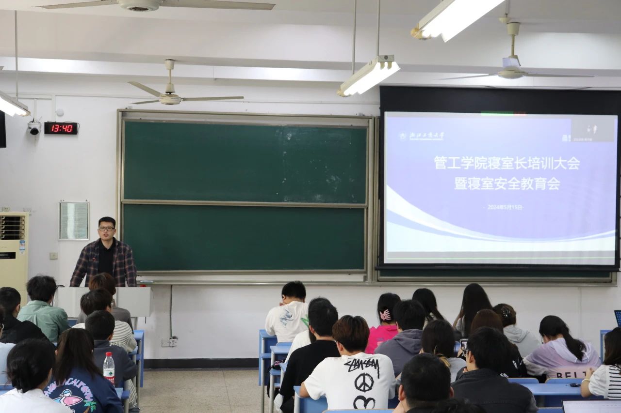 吴老师从用电安全、防范诈骗和晚打卡三方面对全体寝室长开展培训教育,带领了寝室长集中学习了《浙江工商大学学生公寓管理办法》,更深入了解了寝室安全行为规范。