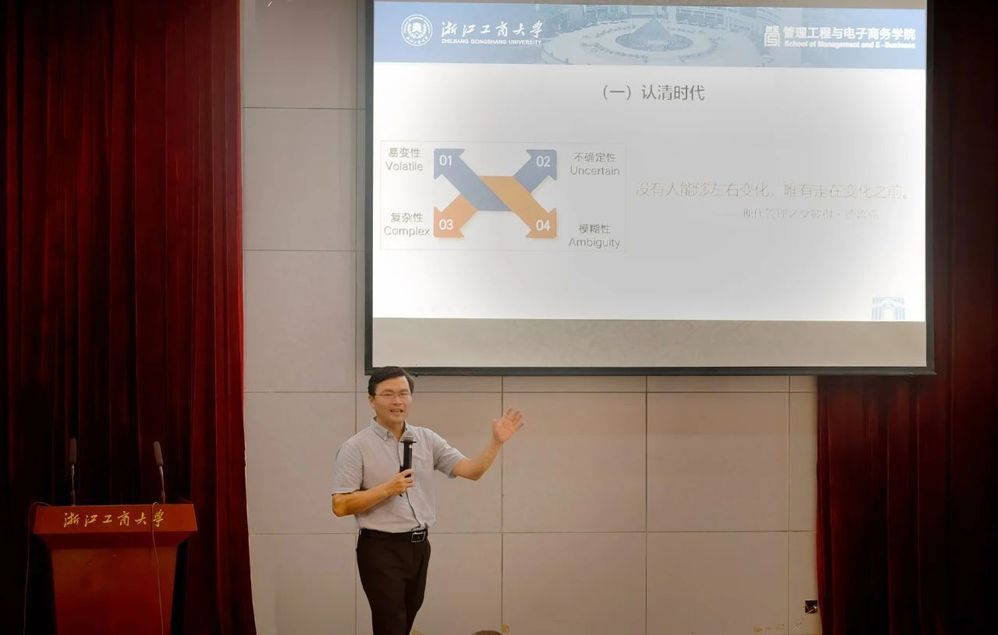 在会议的最后环节,院长厉小军发表了题为《拥抱变化,培养未来竞争力》的讲话。他首先向全体新生介绍了pg电子模拟器 的基本情况,涵盖了pg电子模拟器 历史、专业设置、师资力量、教学科研平台、教学科研成果等方面。随后,厉院长从自己本科毕业近三十年的经历出发,向新生同学表达了他的建议与期望。他强调,作为新时代的大学生,我们应认清时代的变迁,牢记“无人能够左右变化,唯有走在变化之前”的哲理,积极拥抱变化,培养自己适应变化的能力。同时,要学会如何高效学习和做好时间管理,注重学习解决问题的方法与思维,重视线上学习和向AI学习。厉院长还提到,我们要体味生活中的“无用之用”,读无用之书;更要保持身心健康,为美好的未来注入源源不断的能量。在讲话的尾声,他激励同学们在大学期间不仅要趣学专业,更要全面发展,成为一名真正意义的“大学生”。
