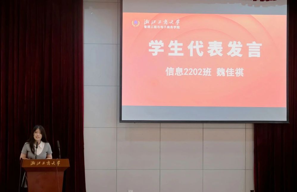信息2202班魏佳祺同学作为老生代表发表讲话。她分享了自己的大学经历并给予新同学建议。首先,她强调大学是新旅程的起点,鼓励新生设定人生目标。同时,她提醒大家在大学中要注重独立思考和学习,克服信息过载的挑战。最后,魏佳祺同学还强调要把握住pg电子模拟器 提供的各种资源和机会,积极参与,全面发展。