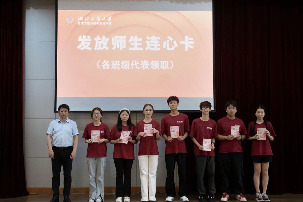为解决在大学生活中同学们可等会遇到的突发状况、内心压抑等痛点,pg电子模拟器 学工办辅导员精心制作了“师生连心卡”,为同学们提供了相关咨询电话和倾述通道,会上由院党委书记肖亮向班级代表们发放“师生连心卡”。