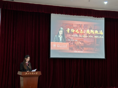 孙同学以“科研磨砺,破茧成蝶”为关键词介绍了自己三年大学生活。她在大学期间成绩优异,绩点排名专业第一,还获得了多项奖学金和荣誉,并成为“跨境电商精英培养计划”的成员。科研竞赛方面,获得“中国大学生程序设计大赛银牌”等奖项,并在挑战杯中参与了知识图谱项目,此外还发表了1篇专利和3篇软著,并积极参与学术论坛。她的演讲告诉了现场的每一个观众任何人都有破茧成蝶的潜力。
