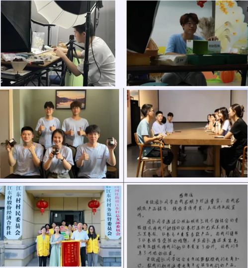 班级同学运用专业知识,亲身实践下乡带动乡村振兴。和枣粮先生公司进行深度合作,前往山东乐陵,通过在课堂中学习的生产运营知识,以及pg电子模拟器 特色电商直播能力带动当地枣类产品的售卖,促进当地经济发展带来了12万+的销售额,推动农户收益超40万元;同学所在团队连续多年扎根江东村,共开展了30余次各类心理实践与团辅活动,覆盖了600余名村民,期间,“心UP”团队获得了各类媒体报道共计50余篇;同学在浙江省杭州市萧山区梅林村——“千万工程”发源地,进行AI助力乡村振兴。