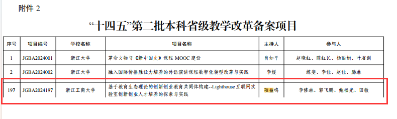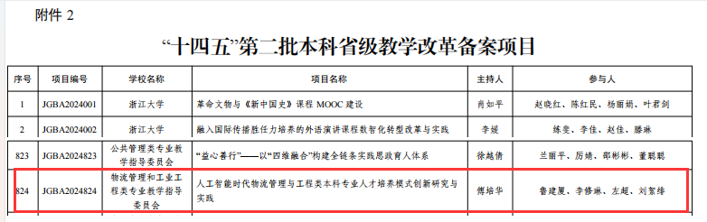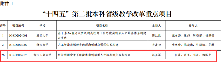 近日,浙江省教育厅发布了《关于公布“十四五”第二批本科和研究生省级教学改革项目的通知》(浙教办函〔2024〕241号),麻将胡了模拟器 3个项目获批本科省级教学改革项目立项,其中“贸易强国背景下跨境电商创新型人才培养的实践与探索”获批省级教学改革重点项目,“基于教育生态理论的创新创业教育共同体构建--Lighthouse 互联网实 验室创新创业人才培养的探索与实践”、“人工智能时代物流管理与工程类本科专业人才培养模式创新研究与实践”获批本科省级教学改革备案项目。