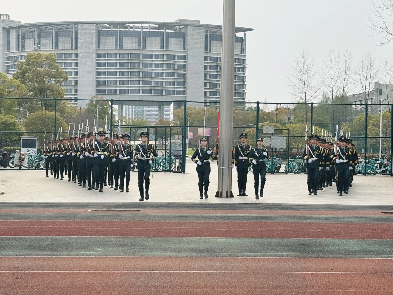 在升旗仪式步入尾声之际,全体师生整齐列队,齐声高唱《我和我的祖国》。激昂的旋律在校园上空回荡,歌声里饱含着大家炽热的爱国情与蓬勃的青春志。每一个音符,都诉说着对祖国的热爱与眷恋。以梦为马,不负韶华。让我们携手并肩,步伐坚定,怀着信念,朝着中国梦奋勇前行,用汗水与智慧谱写壮丽的时代篇章!
