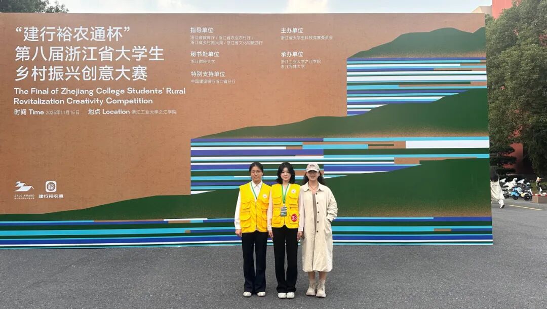 2025年11月中下旬“建行裕农通杯”第八届浙江省大学生乡村振兴创意大赛决赛完美落幕,由管工心服组建的共同‘心’富裕‘浙’乡先行项目团队凭借创新理念和扎实实践,荣获省级银奖。这是团队深耕乡村、助力“心”富裕结出的硕果。